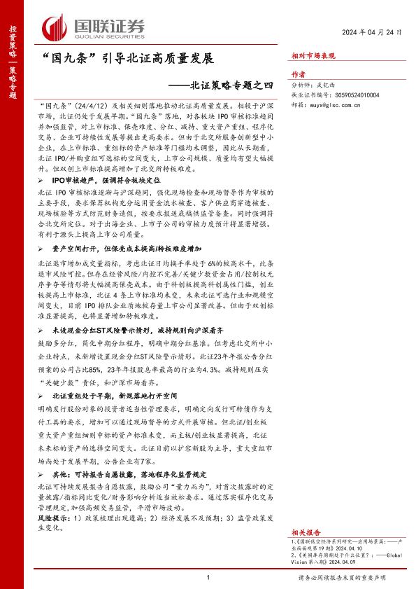 【国联证券】【20240424】北证策略专题之四:“国九条”引导北证高质量发展-16页