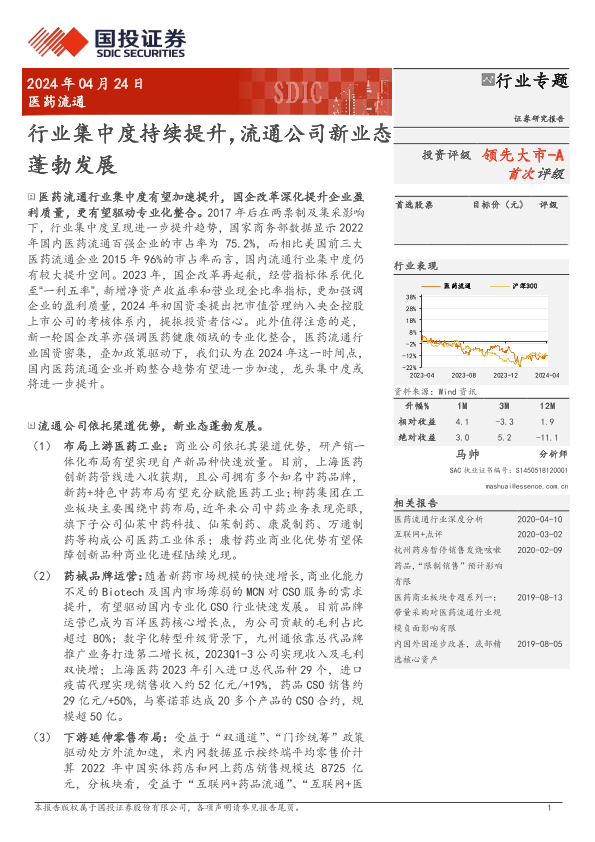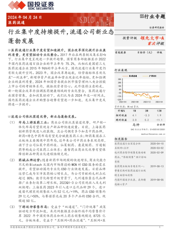 【国投证券】【20240424】医药流通行业专题:行业集中度持续提升,流通公司新业态蓬勃发展-25页