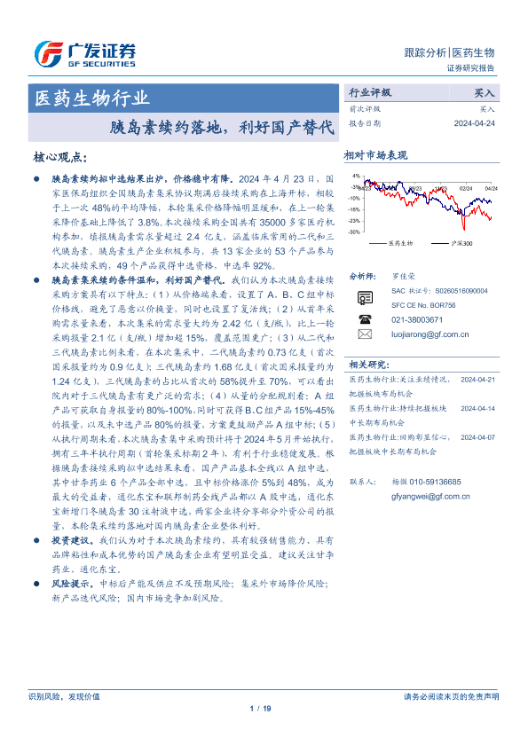 【广发证券】【20240424】医药生物行业:胰岛素续约落地,利好国产替代-19页
