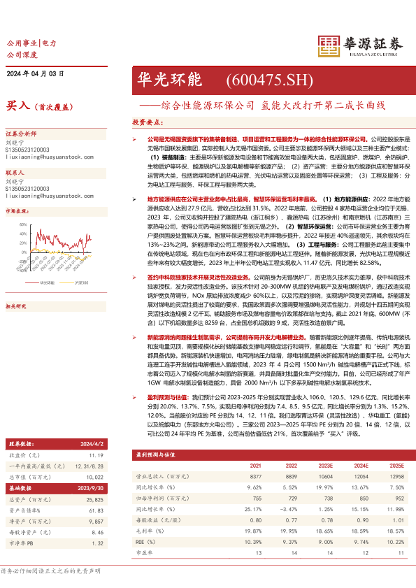 【华源证券】【20240403】华光环能-600475.SH-综合性能源环保公司 氢能火改打开第二成长曲线-20页