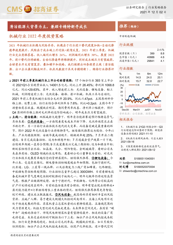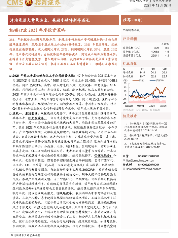 【海通证券】【20211202】机械行业2022年度投资策略:清洁能源大背景为主,兼顾专精特新寻成长-42页