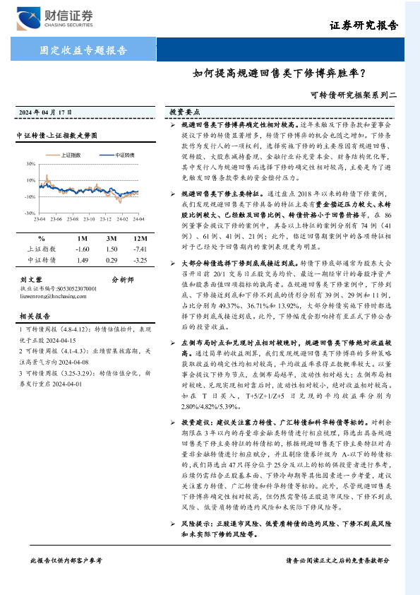 【财信证券】【20240417】可转债研究框架系列二:如何提高规避回售类下修博弈胜率?-21页