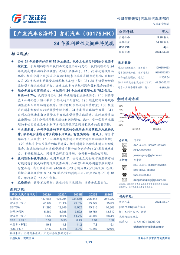 【广发证券】【20240426】吉利汽车(00175.HK)24年盈利弹性大概率将兑现-27页