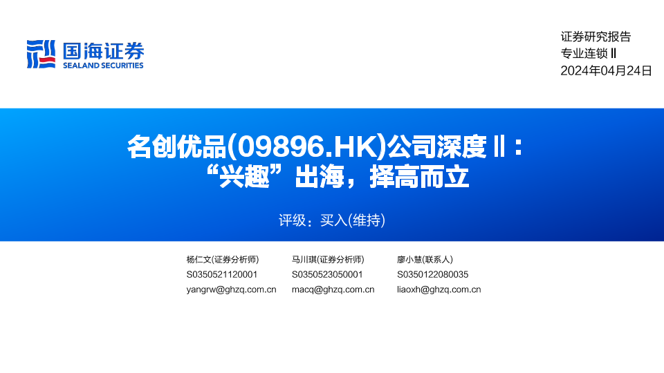 【国海证券】【20240424】名创优品(9896.HK)公司深度Ⅱ:“兴趣”出海,择高而立-50页