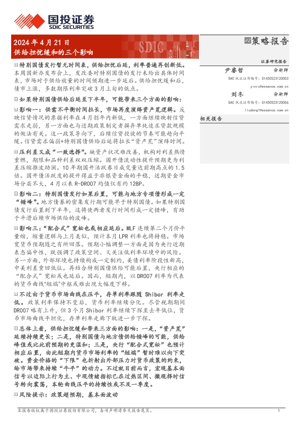 【国投证券】【20240421】固定收益定期报告:供给担忧缓和的三个影响-10页