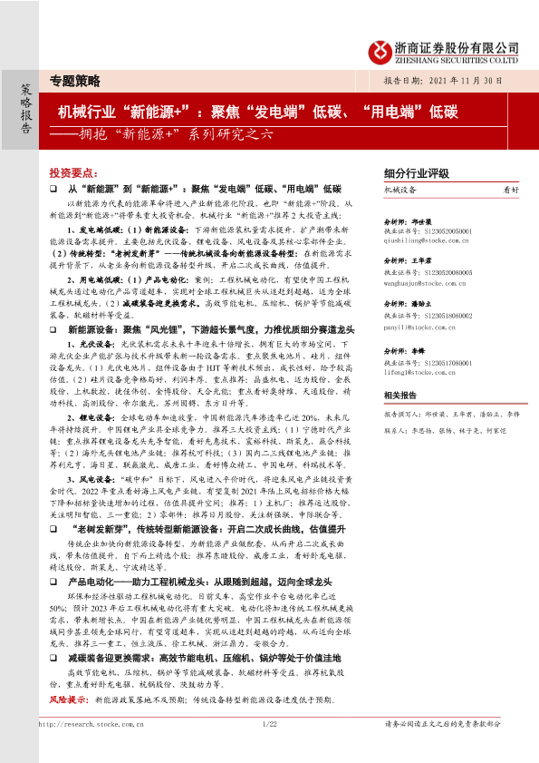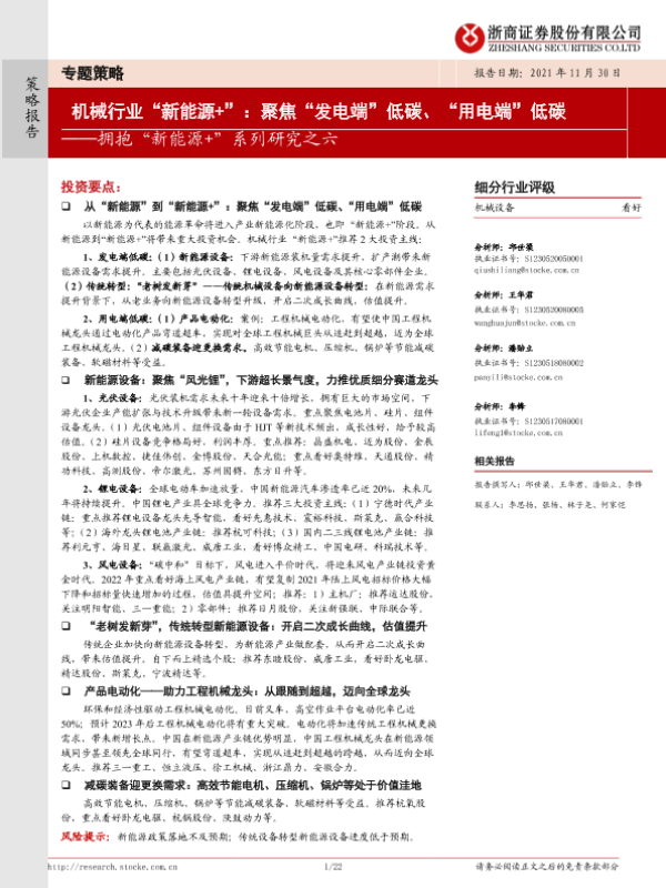 【浙商证券】【20211130】机械设备行业拥抱“新能源+”系列研究之六 :机械行业“新能源+”,聚焦“发电端”低碳、“用电端”低碳-22页