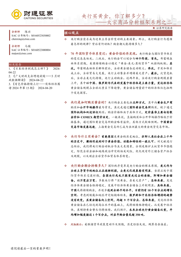 【财通证券】【20240424】央行买黄金,你了解多少?——大宗商品分析框架系列之二-15页