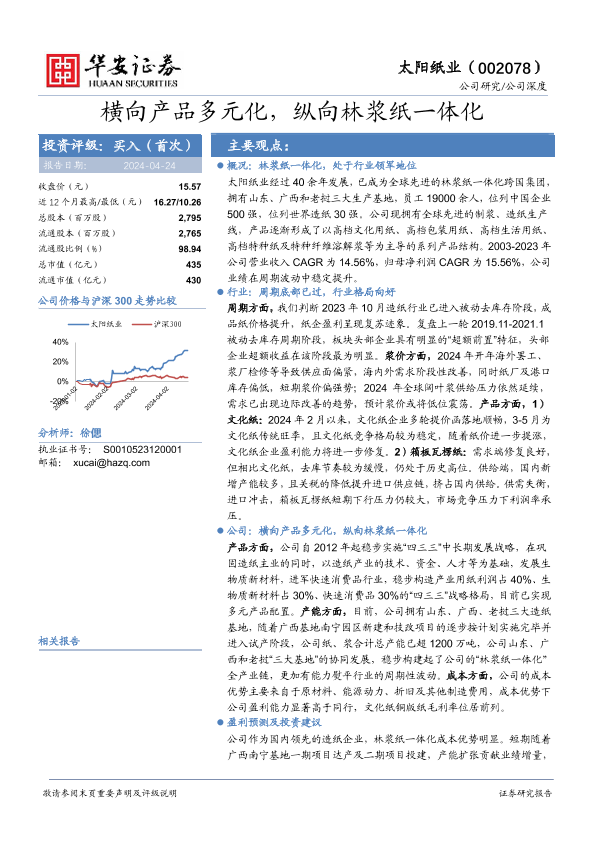 【华安证券】【20240424】太阳纸业(002078)横向产品多元化,纵向林浆纸一体化-46页