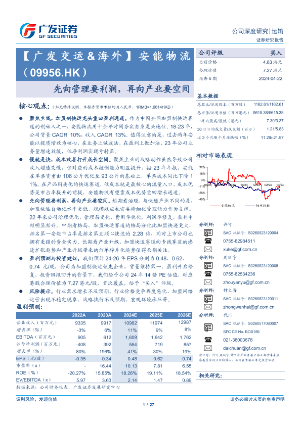【广发证券】【20240422】安能物流(09956.HK)先向管理要利润,再向产业要空间-27页