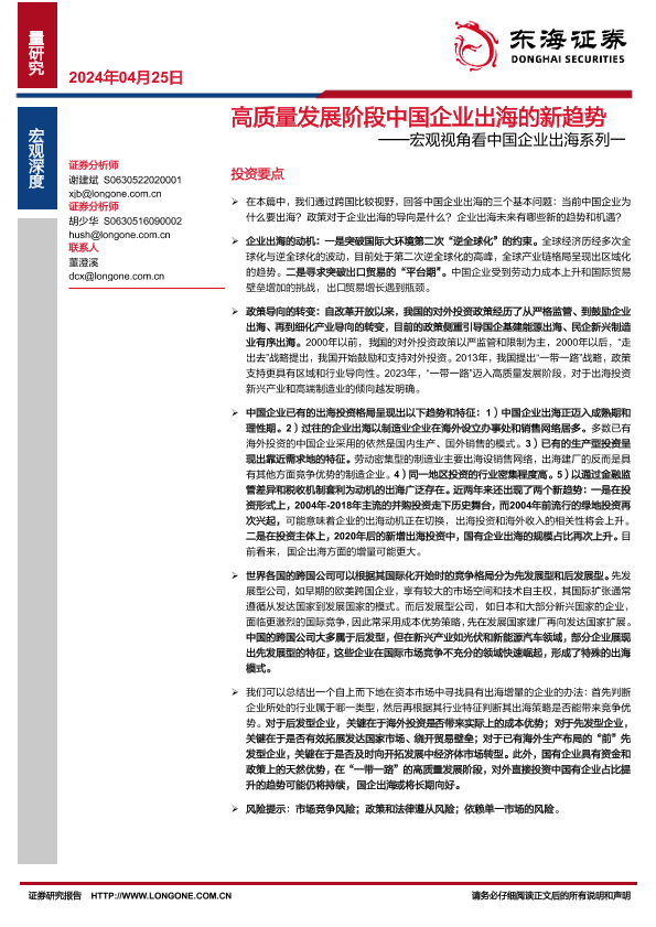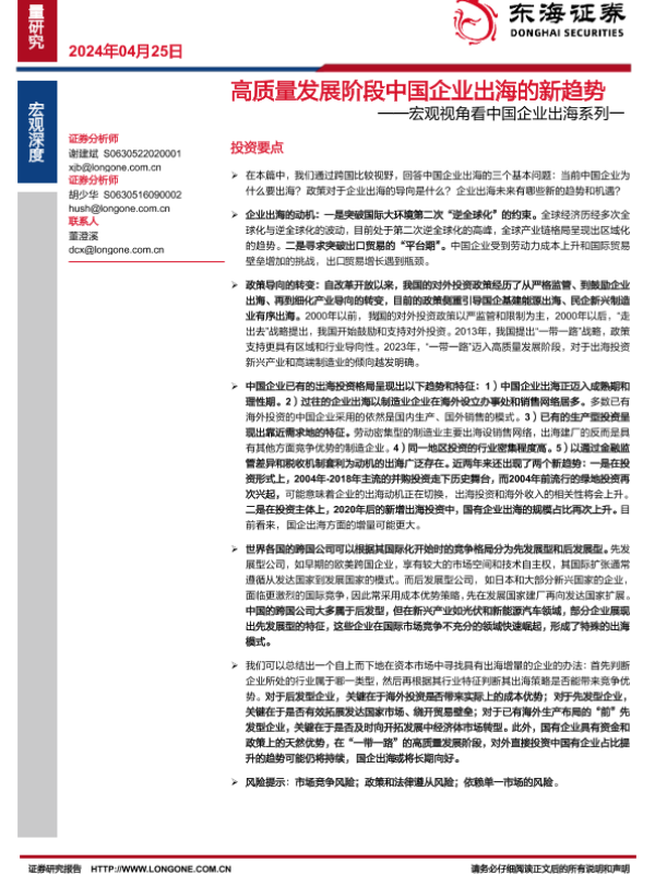 【东海证券】【20240425】高质量发展阶段中国企业出海的新趋势-26页