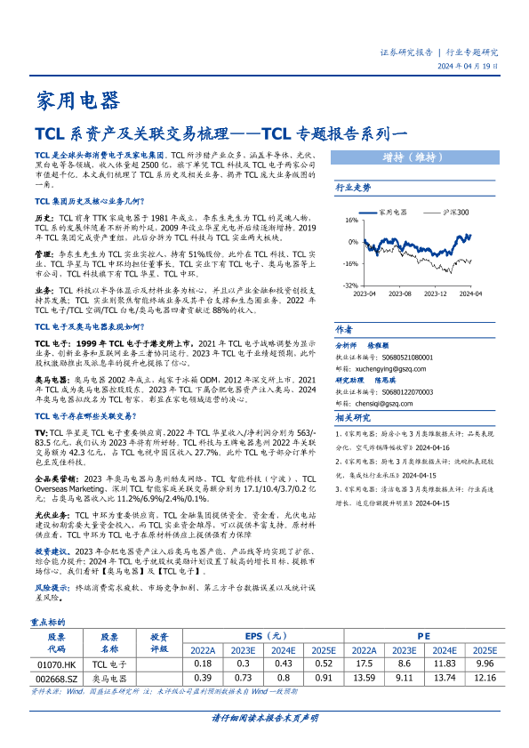 【国盛证券】【20240419】家用电器行业TCL专题报告系列一:TCL系资产及关联交易梳理-17页