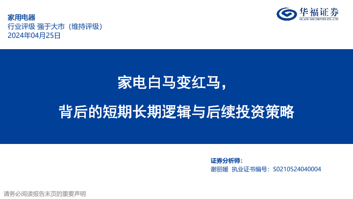 【华福证券】【20240425】家用电器行业专题报告:家电白马变红马,背后的短期长期逻辑与后续投资策略-27页