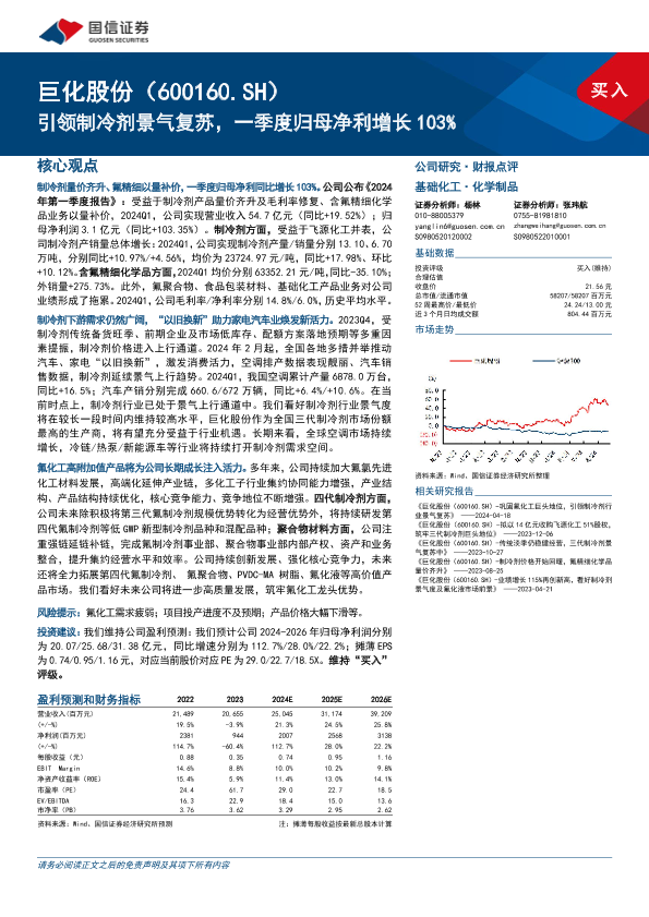 【国信证券】【20240426】巨化股份(600160)引领制冷剂景气复苏,一季度归母净利增长103%-11页