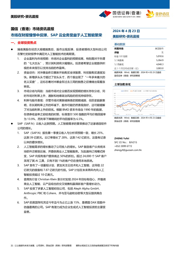 【国信证券(香港)】【20240423】市场在财报憧憬中反弹,SAP云业务受益于人工智能繁荣-13页