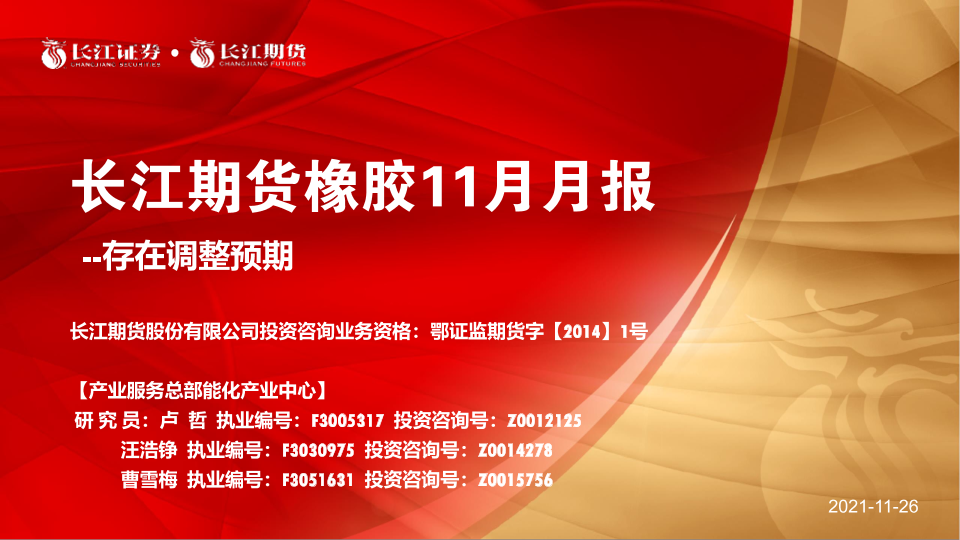 【长江期货】【20211126】橡胶11月月报:存在调整预期-19页