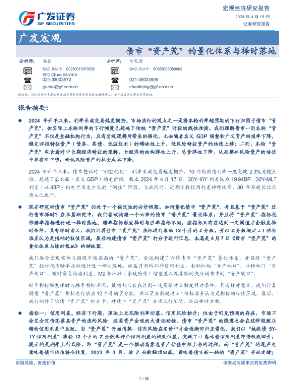 【广发证券】【20240419】债市“资产荒”的量化体系与择时落地-36页