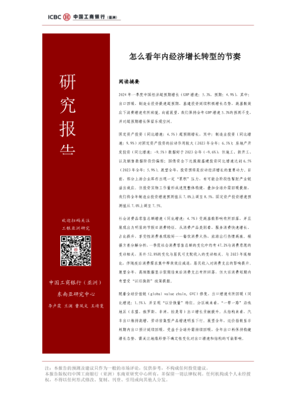 【中国工商银行(亚洲)东南亚研究中心】【20240425】怎么看年内经济增长转型的节奏-13页