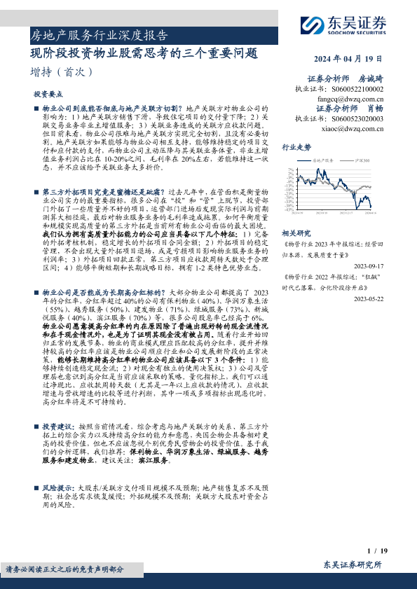 【东吴证券】【20240419】房地产服务行业深度报告:现阶段投资物业股需思考的三个重要问题-19页