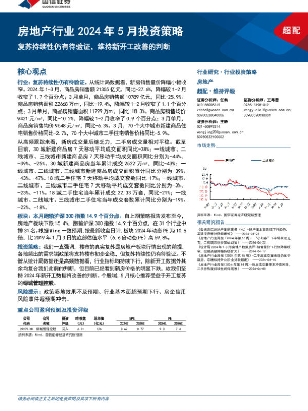 【国信证券】【20240425】房地产行业2024年5月投资策略:复苏持续性仍有待验证,维持新开工改善的判断-12页