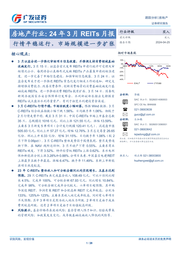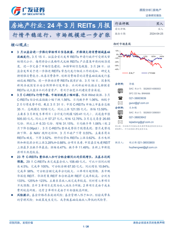 【广发证券】【20240425】房地产行业24年3月REITS月报:行情平稳运行,市场规模进一步扩张-26页