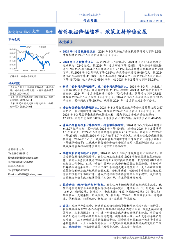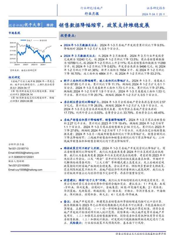 【海通证券】【20240420】房地产行业月报:销售数据降幅缩窄,政策支持维稳发展-11页