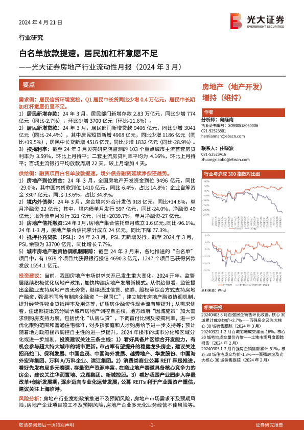 【光大证券】【20240421】房地产行业流动性月报(2024年3月):白名单放款提速,居民加杠杆意愿不足-12页