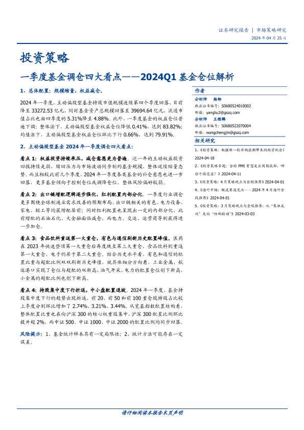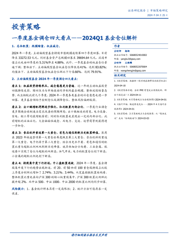 【国盛证券】【20240425】投资策略-2024Q1基金仓位解析:一季度基金调仓四大看点-10页