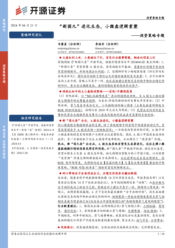 【开源证券】【20240421】投资策略专题:“新国九”进化生态,小微盘逻辑重塑-10页