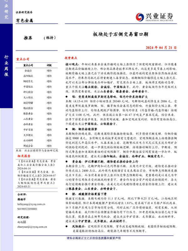 【兴业证券】【20240421】有色金属行业:板块处于右侧交易窗口期-29页