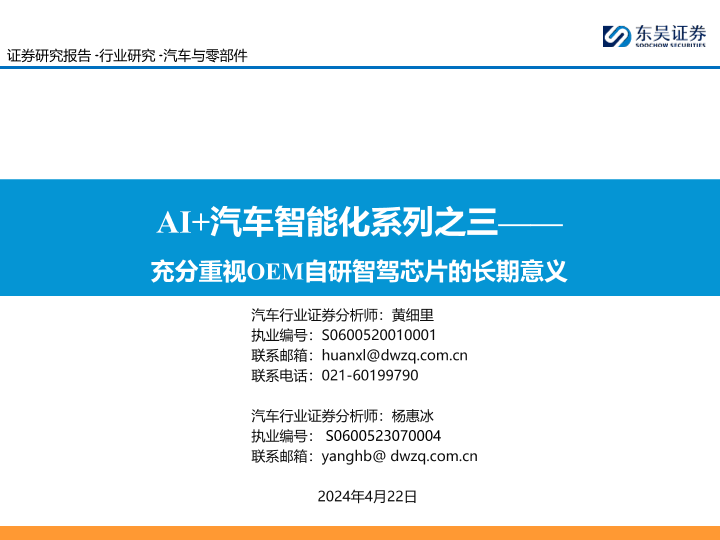 【东吴证券】【20240422】汽车与零部件行业AI+汽车智能化系列之三:充分重视OEM自研智驾芯片的长期意义-75页