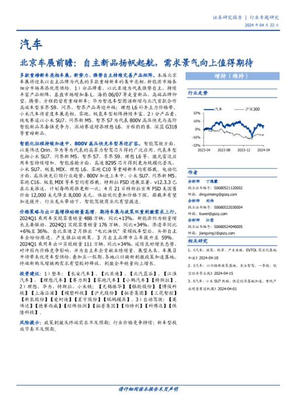 【国盛证券】【20240422】汽车行业北京车展前瞻:自主新品扬帆起航,需求景气向上值得期待-23页
