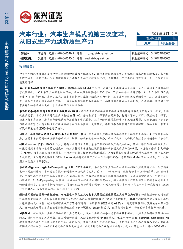 【东兴证券】【20240419】汽车行业报告:汽车生产模式的第三次变革,从旧式生产力到新质生产力-21页