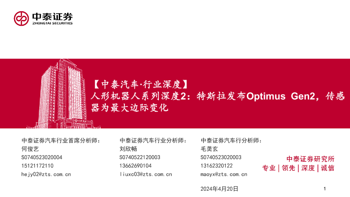 【中泰证券】【20240420】人形机器人系列深度2:特斯拉发布Optimus Gen2,传感器为最大边际变化-27页