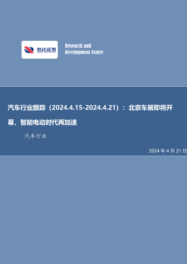 【信达证券】【20240421】汽车行业跟踪:北京车展即将开幕,智能电动时代再加速-25页