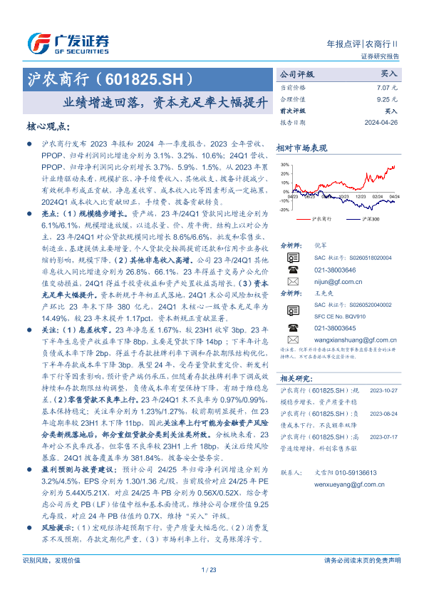 【广发证券】【20240426】沪农商行(601825)业绩增速回落,资本充足率大幅提升-23页