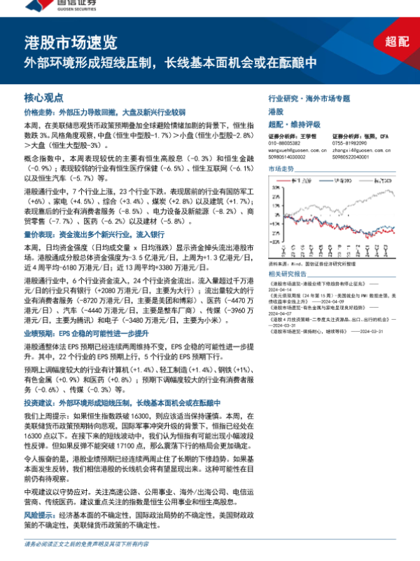 【国信证券】【20240421】港股市场速览:外部环境形成短线压制,长线基本面机会或在酝酿中-18页