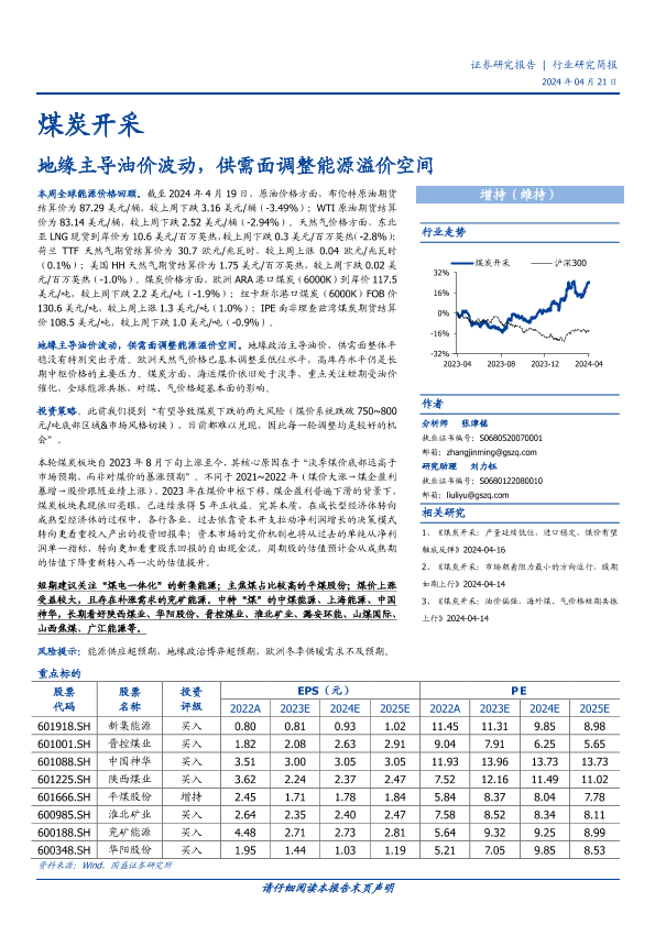 【国盛证券】【20240421】煤炭开采行业研究简报:地缘主导油价波动,供需面调整能源溢价空间-11页
