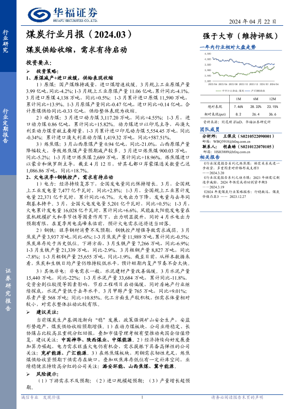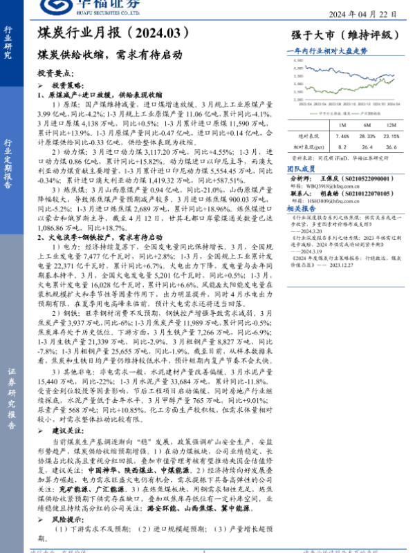 【华福证券】【20240422】煤炭行业月报:煤炭供给收缩,需求有待启动-16页