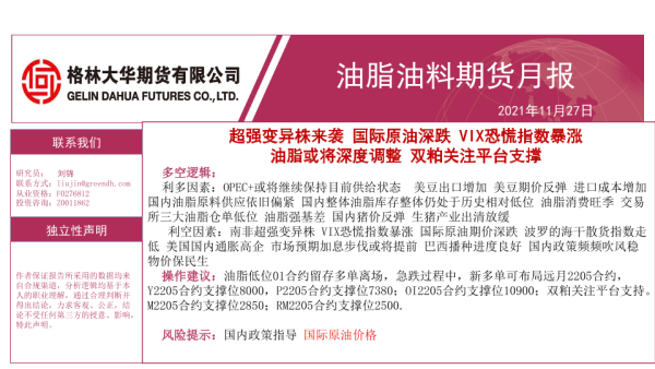 【格林大华期货】【20211127】油脂油料期货月报:超强变异株来袭,国际原油深跌,VIX恐慌指数暴涨,油脂或将深度调整,双粕关注平台支撑-33页