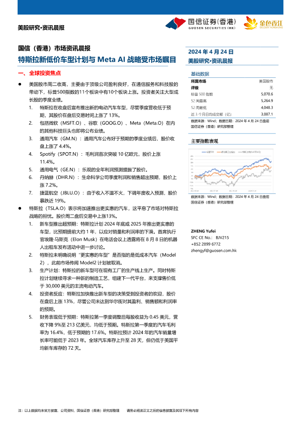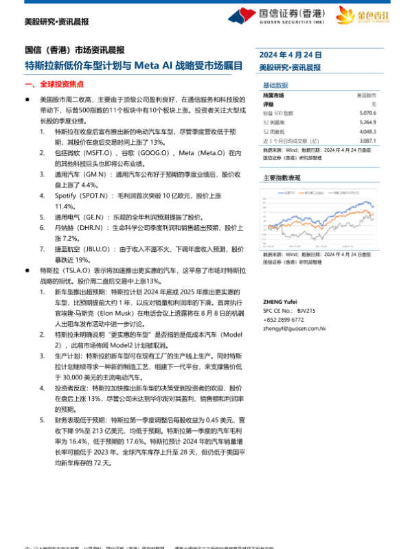 【国信证券(香港)】【20240424】特斯拉新低价车型计划与Meta+AI战略受市场瞩目-13页