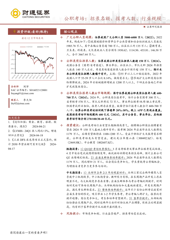 【财通证券】【20240423】社会服务行业专题报告-公职考培:招录名额、报考人数、行业规模-21页