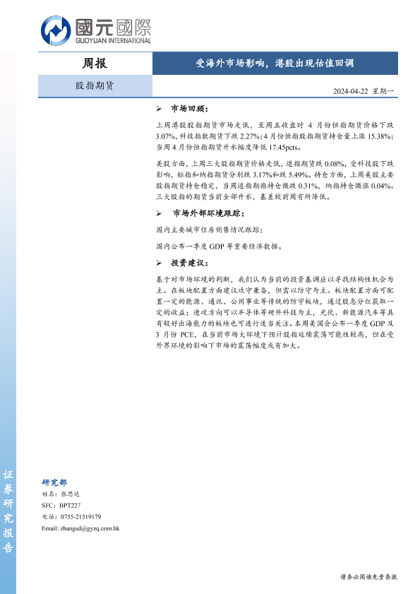 【国元国际】【20240422】股指期货:受海外市场影响,港股出现估值回调-11页