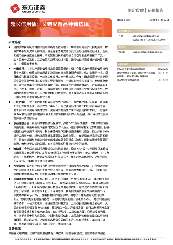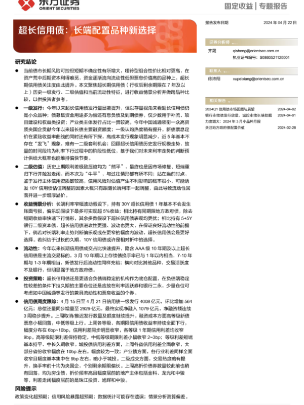 【东方证券】【20240422】超长信用债:长端配置品种新选择-24页