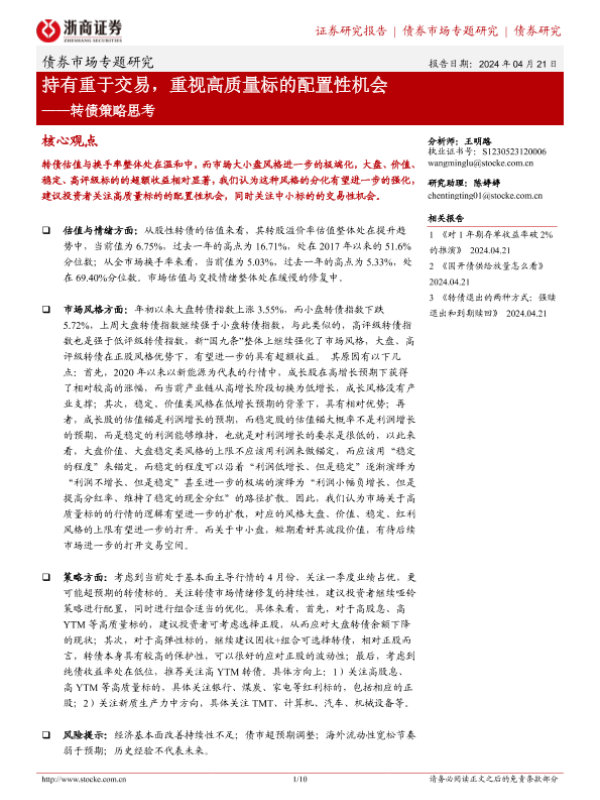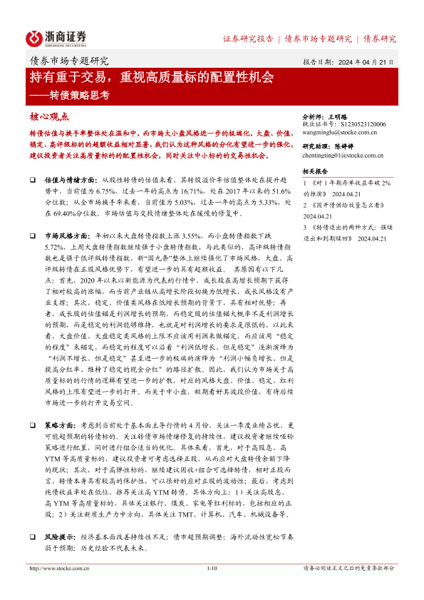 【浙商证券】【20240421】转债策略思考:持有重于交易,重视高质量标的配置性机会-8页