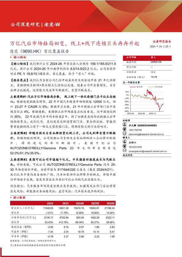 【西部证券】【20240425】途虎(9690.HK)首次覆盖报告:万亿汽后市场格局初变,线上+线下连锁巨头冉冉升起-35页
