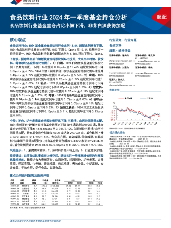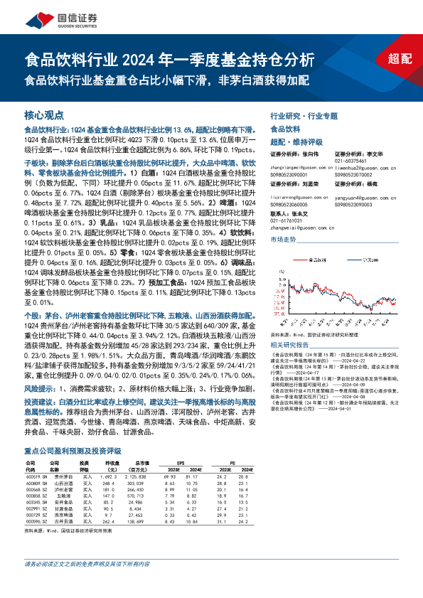 【国信证券】【20240424】食品饮料行业2024年一季度基金持仓分析:食品饮料行业基金重仓占比小幅下滑,非茅白酒获得加配-13页