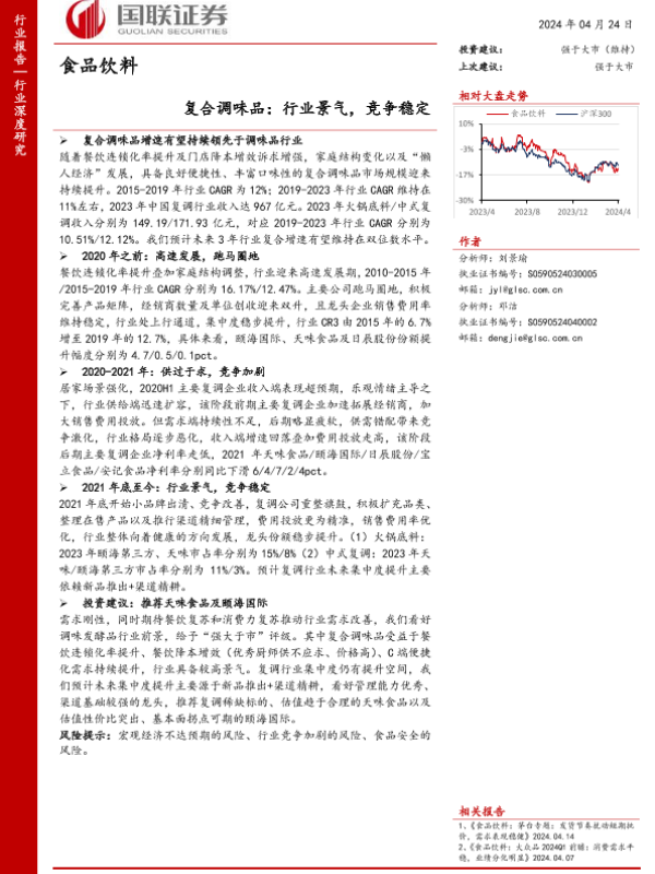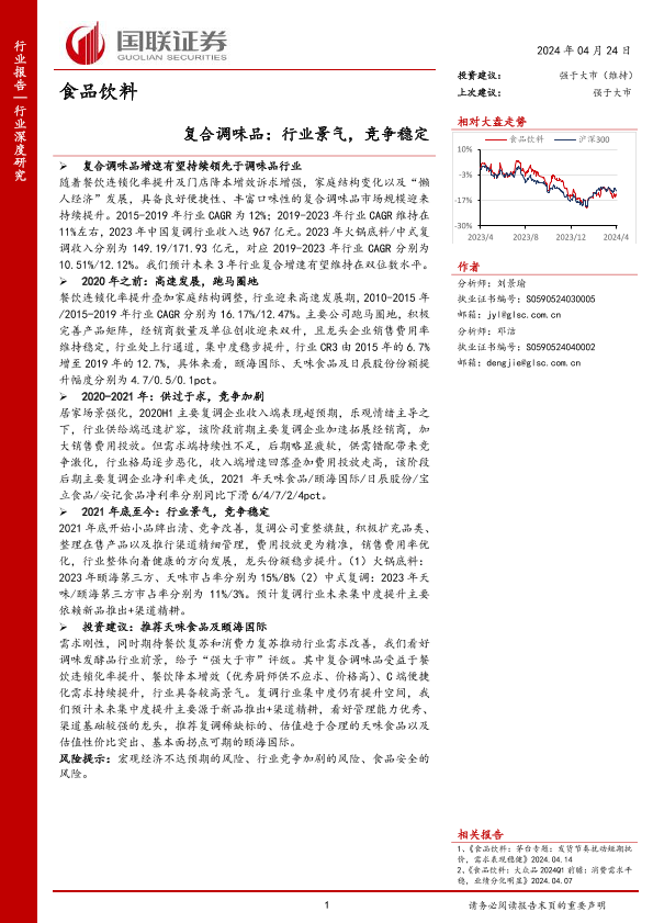 【国联证券】【20240424】食品饮料行业深度研究:复合调味品,行业景气,竞争稳定-19页