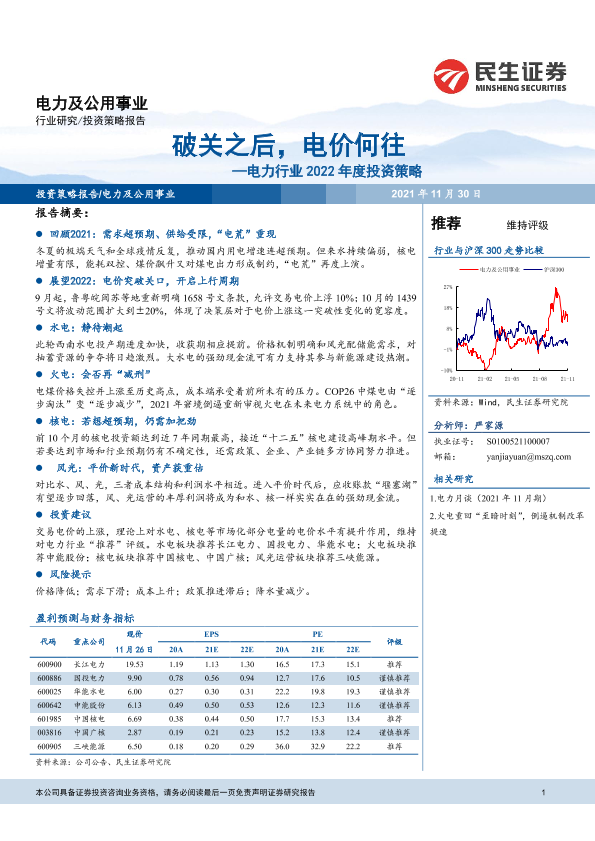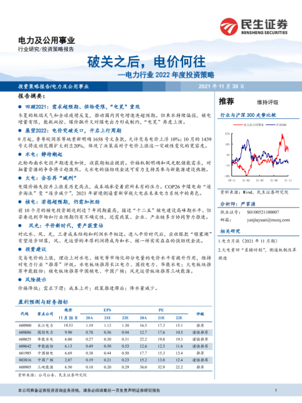 【民生证券】【20211130】电力行业2022年度投资策略:破关之后,电价何往-56页