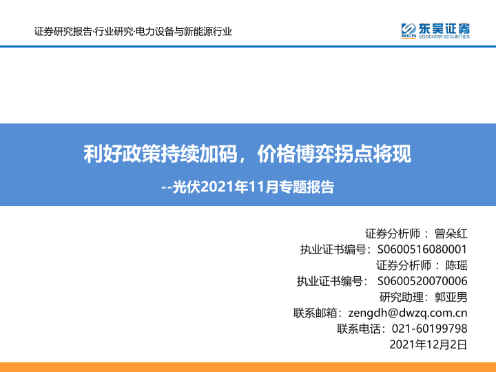 【东吴证券】【20211202】电力设备与新能源行业光伏2021年11月专题报告:利好政策持续加码,价格博弈拐点将现-37页