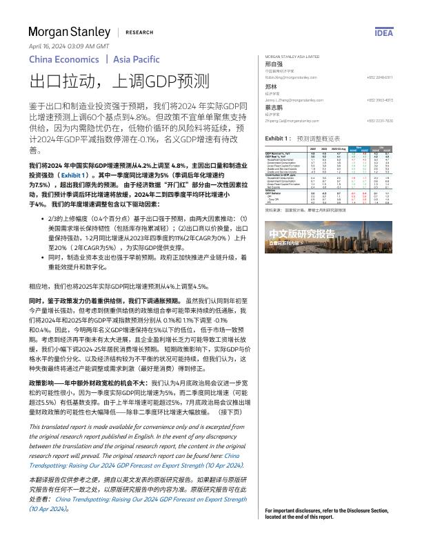 【Morgan Stanley】【20240410】出口拉动,上调GDP预测-8页